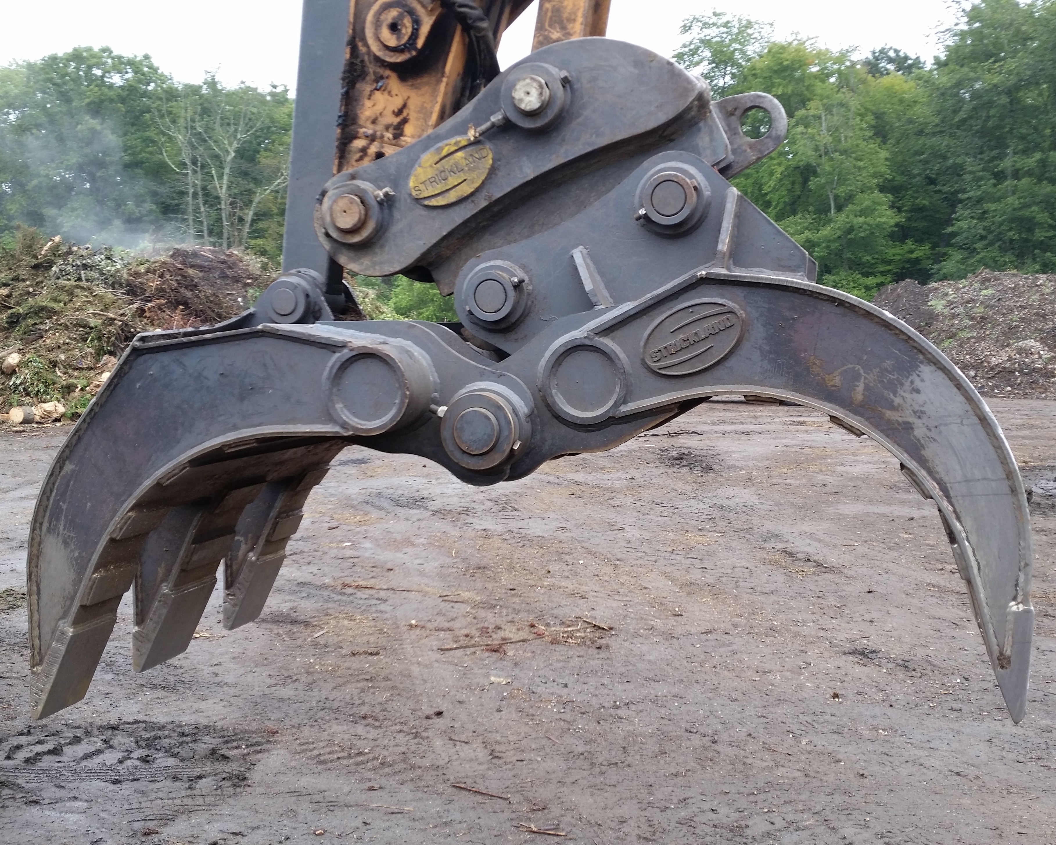 This top quality excavator grapple is designed using the latest 3D CAD technology to be used with a pin grabber quick coupler or for direct pin. Built to last for the toughest of jobs with 400 brinell Hardox steel. Each Strickland Grapple includes Hardox wear plates, pins, stiff arm, weld-on plate and a full manufactures warranty covering material defect and workmanship including the pulverizer jaws for up to 12 months.
